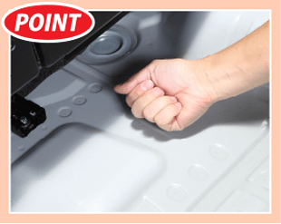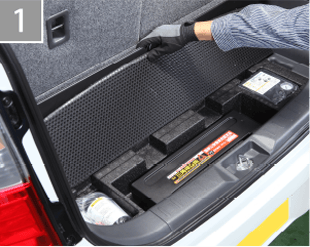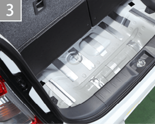 ラゲッジアンダーボックスやスペアタイヤを取り外し、鉄板面のゴミや汚れを取り除いてください。